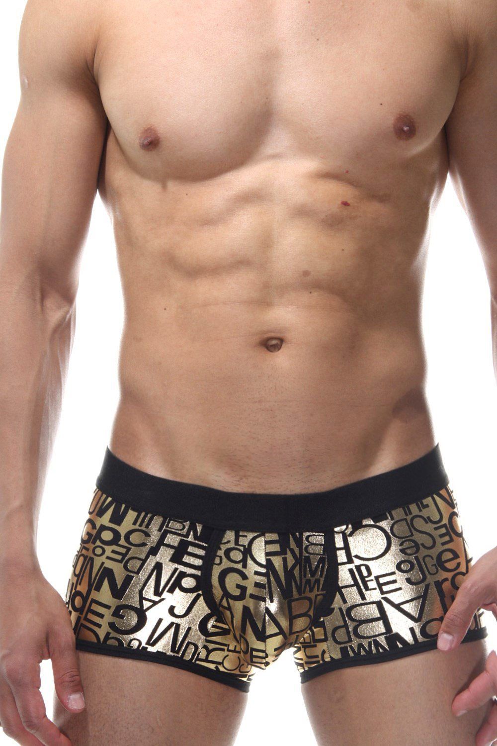 Мужские золотистые трусы-боксеры с принтом.