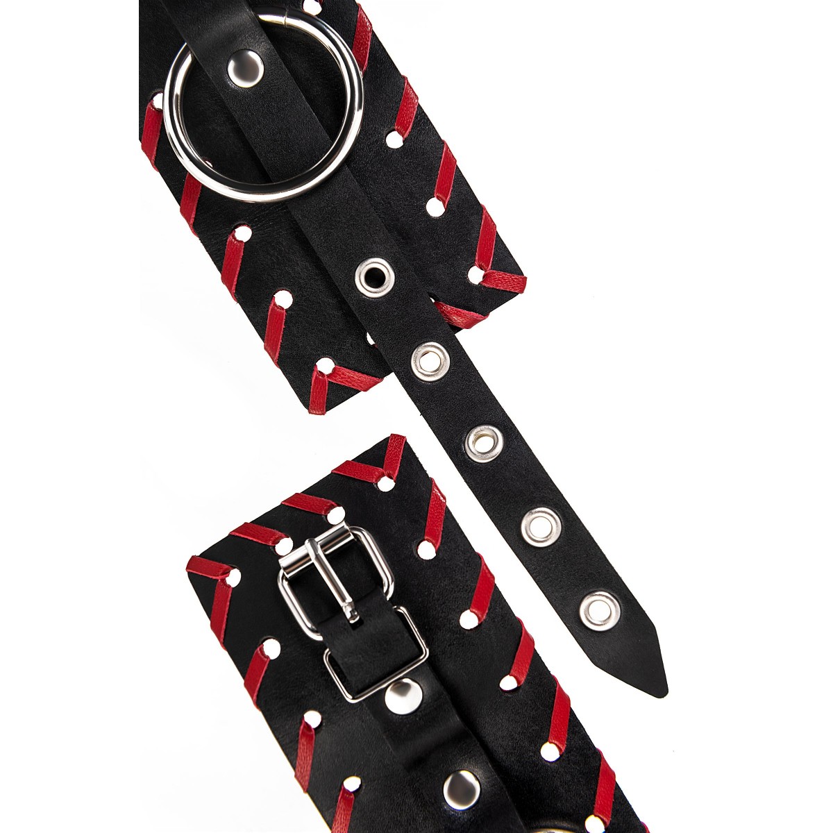 Готовы играть по-взрослому? Не бойтесь своих желаний! Основатели бренда уверены: лучший способ избавиться от искушения - поддаться ему! Добавьте пикантную деталь в ролевую игру и воплотите самую смелую сексуальную фантазию в реальность! Двухслойные кожаные оковы с окантовкой красного цвета, могут стать стильным аксессуаром на «свободных» руках, но могут послужить вашим целям и фантазиям по своему прямому назначению. Наличие двух карабинов и колец позволяет использовать изделие как раздельно – аксессуар-манжеты, так и как наручники для фиксации. К широким металлическим кольцам также можно присоединить и другие аксессуары при помощи карабинов. Благодаря универсальному размеру наручники могут использоваться и мужчинами, и женщинами. Размер легко регулируется с помощью металлических пряжек, органично вписывающихся в общий стиль. Длина манжет - 25 см, ширина манжет - 6,5 см. Длина сцепки - 20 см.