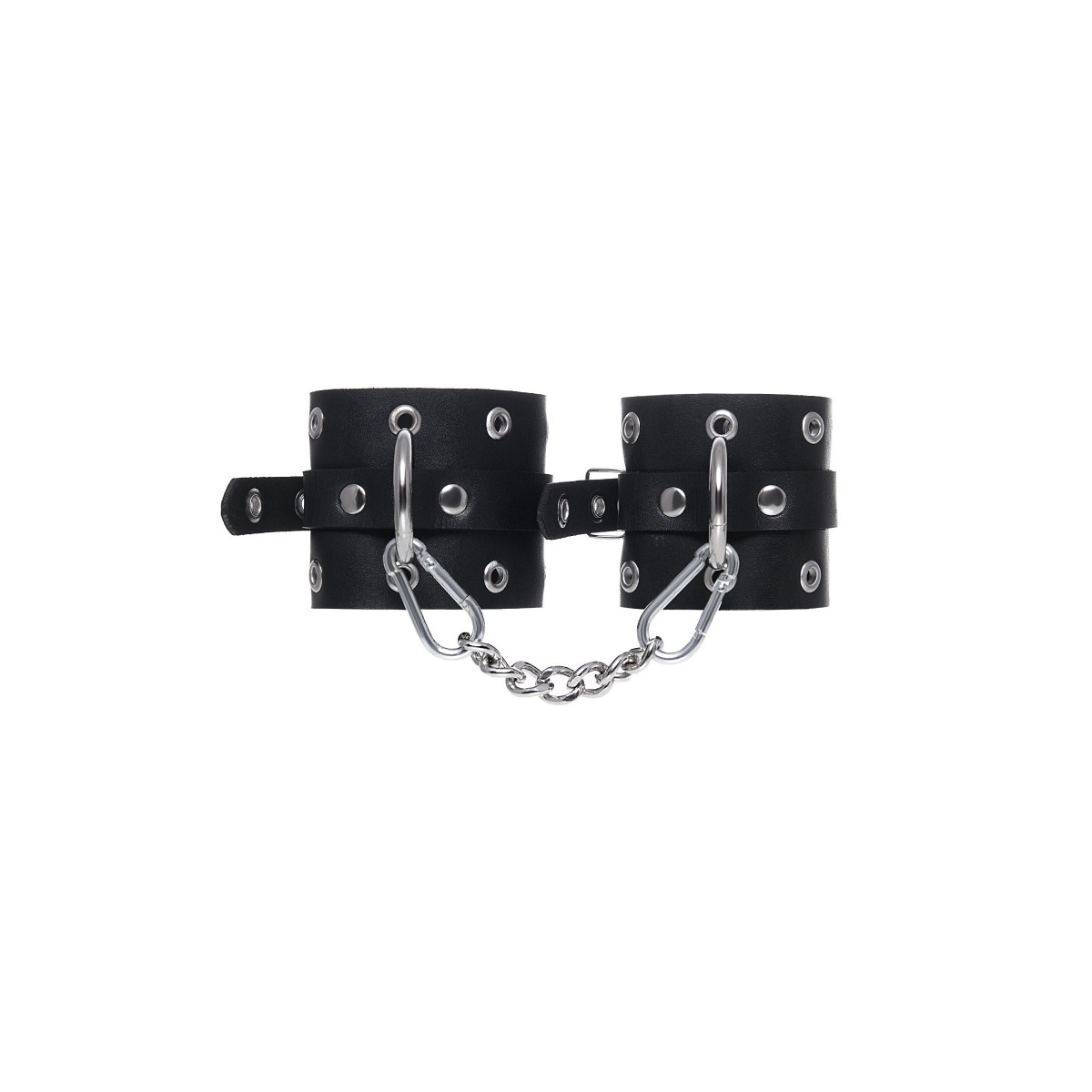 Эти однослойные кожаные наручники с люверсами могут стать стильным аксессуаром, а могут послужить вашим целям по своему прямому назначению. Частичное обездвиживание и невозможность двигать руками дают вам полную власть над партнером – взрослые игры для взрослых. Наличие двух колец и карабинов, соединенных между собой металлической цепочкой, позволяет использовать изделие как раздельно – аксессуар-манжеты, так и как наручники для фиксации. К широким металлическим кольцам также можно присоединить и другие аксессуары при помощи карабинов. Благодаря универсальному размеру наручники могут использоваться и мужчинами, и женщинами. Размер легко регулируется с помощью металлических пряжек, органично вписывающихся в общий стиль. Длина манжет - 20 см, ширина - 6,5 см. Длина сцепки - 13 см.