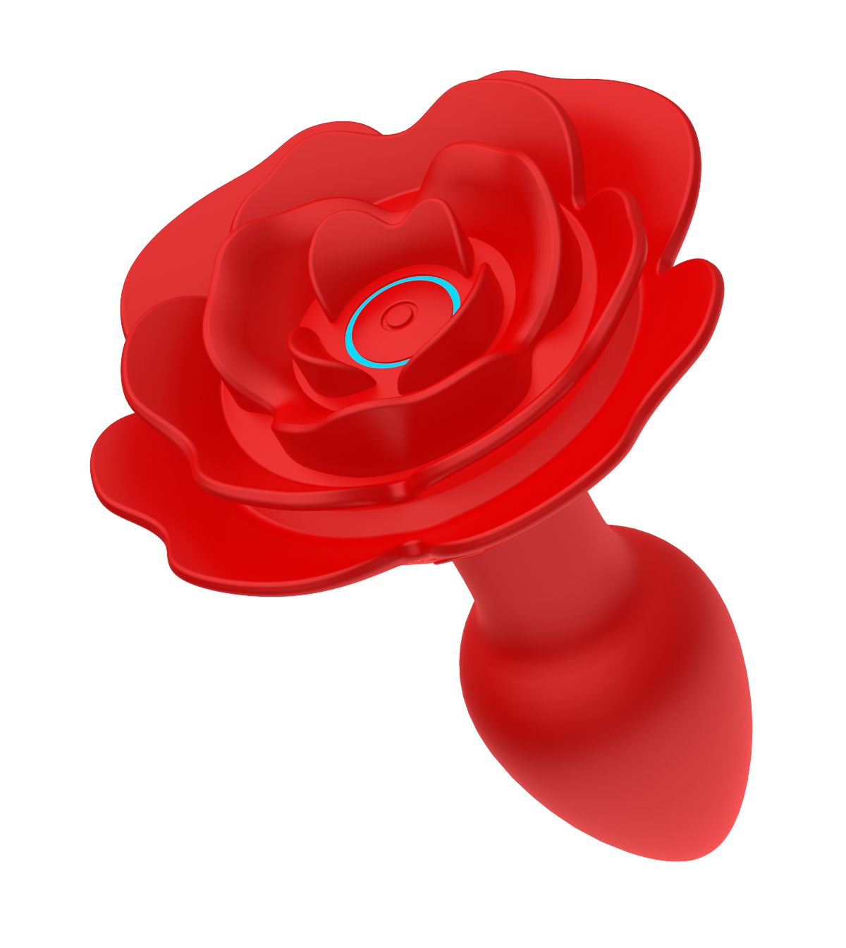 Красный анальный вибростимулятор в форме розы. С пультом ДУ. Имеет 10 режимов вибрации.